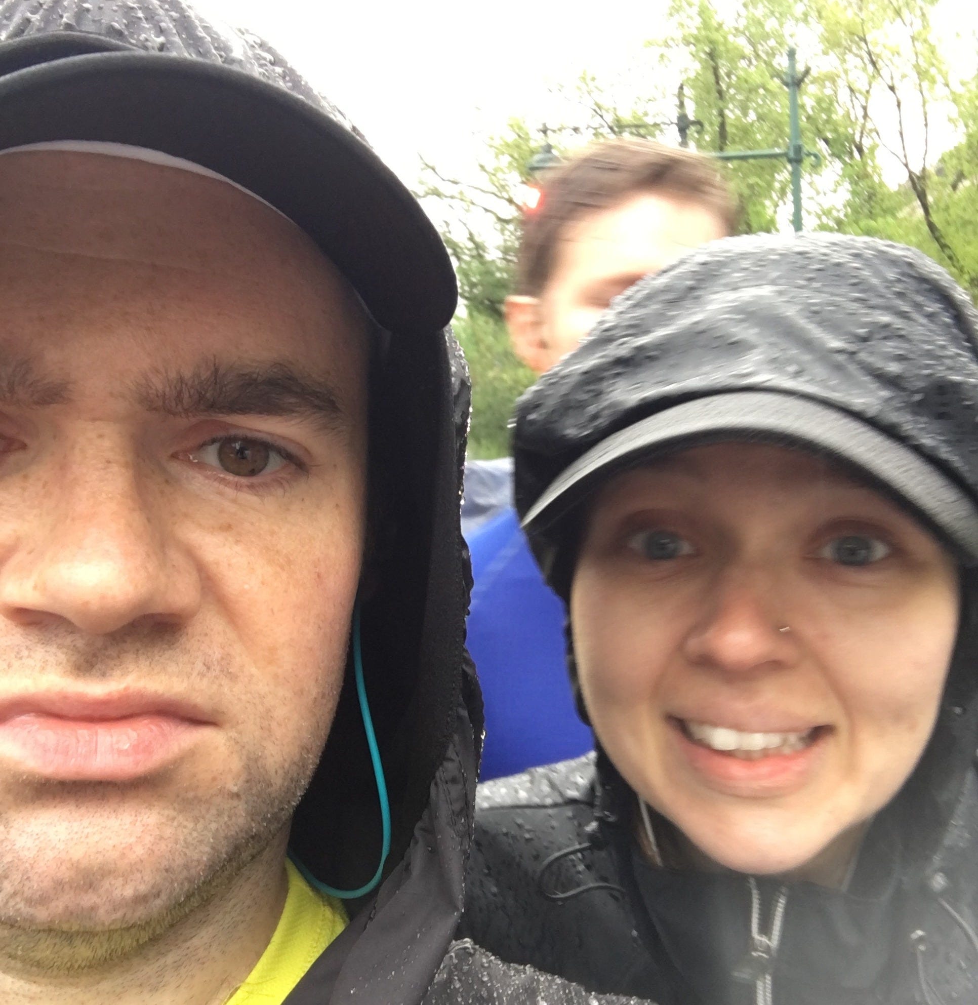 There was also going to be at least thirty minutes of just standing in a corral before the race started. No cover. Just cattle sitting in the rain. Packed in tight, which basically negated umbrellas. And it also negated a change of clothes, because you couldn’t just do that in the middle of Eastern Parkway.